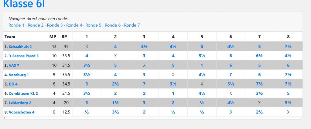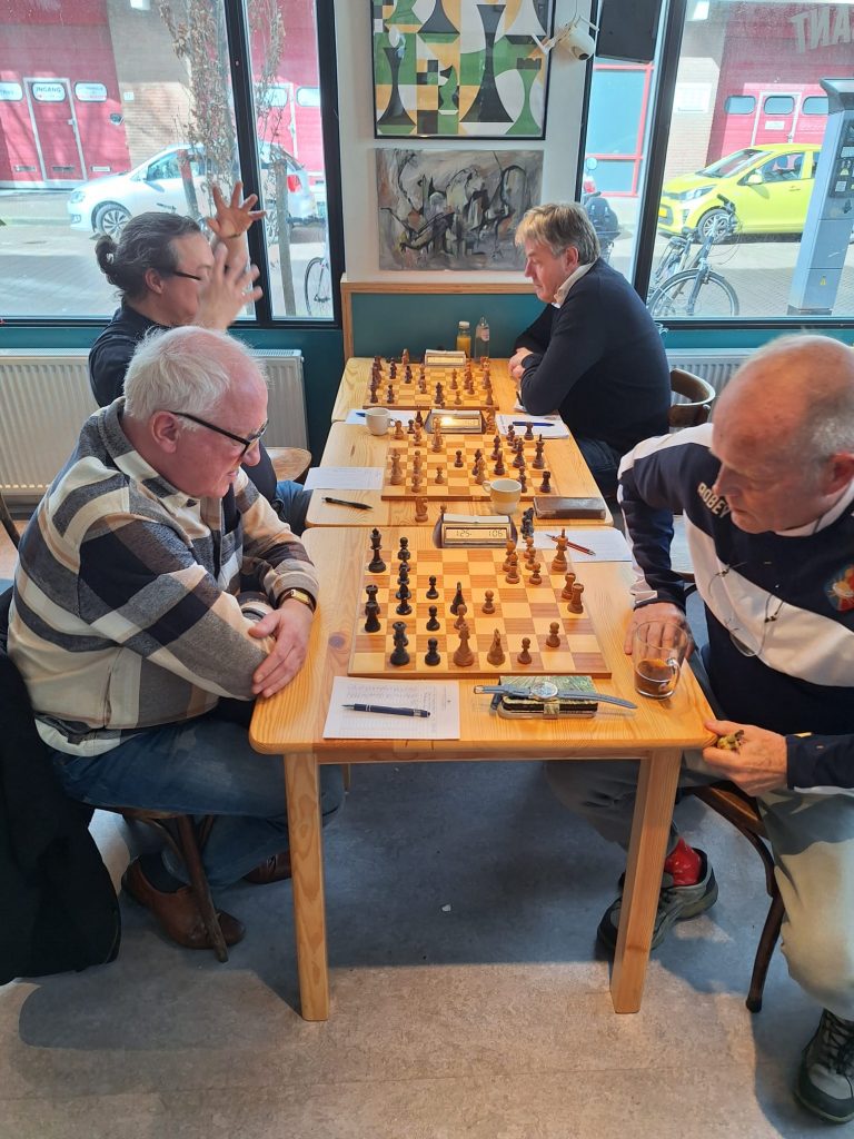 Het bleek al snel geen gelopen race te zijn, het combiteam uit Haarlem en Heemstede gaf behoorlijk tegengas. Armantos zat in een remise stelling en deelde het punt, Murdoch zat ook in een remise stelling maar maakt toch een fout waardoor hij verloor. Hans Then haalde vervolgens een punt binnen maar Rijnko was niet bij de les en verloor. Ondertussen had Kas een gewonnen stelling en Fausto had een remise achtige stelling. Maar kas verrekende zich en verloor. Gelukkig kon Fausto met een vork zijn partij alsnog winnen.