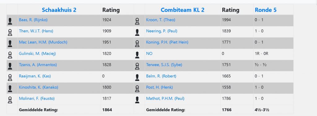 Last but nog least wist Kanako ook haar partij te verzilveren en het resultaat was voor ons 4,5 – 3,5, met de hakken over de sloot.