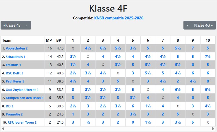 Helaas heeft het eerste team niet de successen van het tweede kunnen volgen. In een spannende middag met veel strijd verloren we nipt van Voorschoten 2. Na afloop hebben we weer in ons vaste chinese restaurant gegeten en geanalyseerd met onze trainer Jop Delemarre.